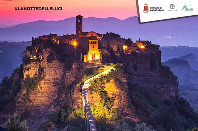 La rupe di Civita di Bagnoregio pronta a brillare sulla valle dei Calanchi. Lo sperone di tufo che sorregge “la città che muore” sarà illuminato, per essere ammirato anche di notte nella sua straordinaria bellezza. È l’evento di punta de “La notte delle luci”, organizzata dal Comune di Bagnoregio in collaborazione con Juppiter e cooperativa Gli Aquiloni: giovedì 3 agosto, alle 23.00, sarà inaugurata l’accensione permanente della rupe di Civita, in un crescendo di attrazioni e spettacoli a partire dal tardo pomeriggio.