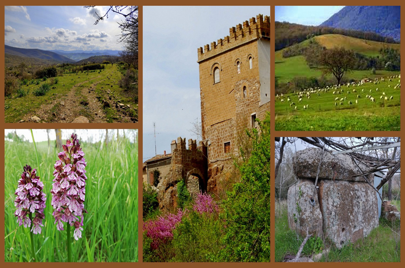 Un piccolissimo borgo circondato da infiniti boschi e pascoli bradi e un cammino che sembra ricordare sentieri di montagna con dei panorami mozzafiato. I ruderi di una torre che sembra edificata sul nulla, affioramenti di lava, qualche teschio di vacca maremmana a terra e la fioritura delle orchidee e degli asfodeli. Non è un set cinematografico, ma la descrizione dell’escursione che vi proponiamo.