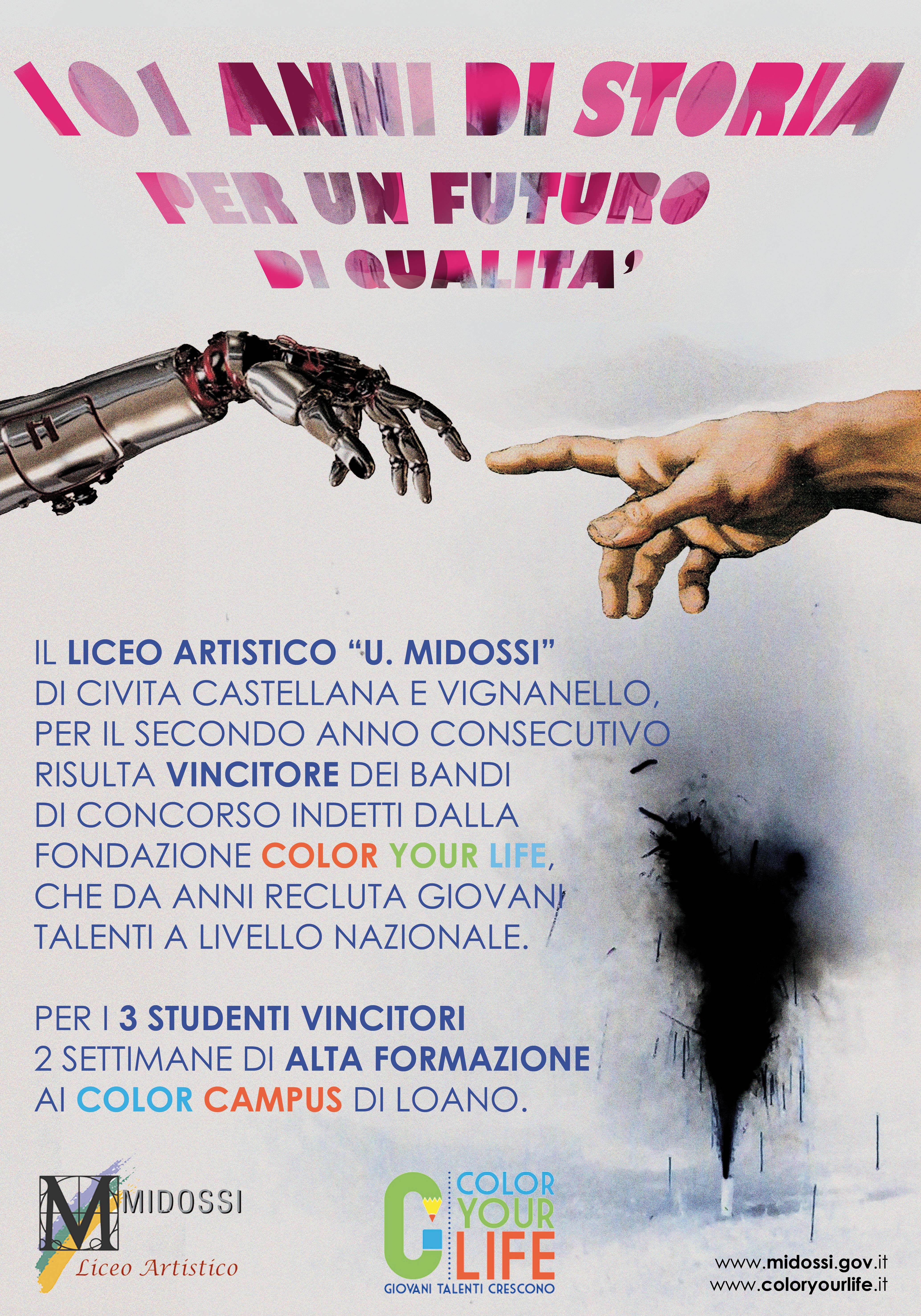 273 ragazze e ragazzi scelti in tutta Italia da nord a sud fino al centro.. Chi sono? I vincitori del bando di concorso della fondazione no-profit COLOR YOUR LIFE, che aiuta nel loro percorso i giovani che sognano di riconoscere le proprie passioni, esprimere il proprio talento e realizzarlo nella costruzione del proprio futuro. Insomma, un premio alle eccellenze pescate nelle nostre scuole, alla fantasia, alla creatività. Come funziona? I giovani presentano il loro progetto, il sogno nel cassetto e una giuria composta da esperti individua i più meritevoli. Ebbene, sui 273 selezionati in tutta Italia, 3 degli studenti premiati sono dell’Istituto Midossi di Civitacastellana e Vignanello.