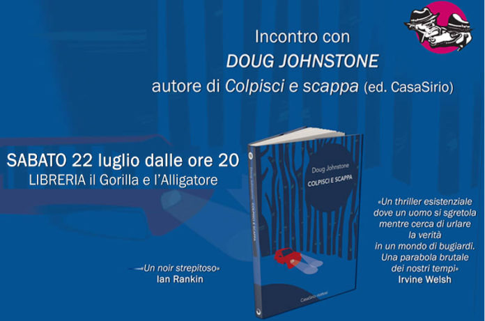 Sabato 22 luglio una serata speciale alla Libreria Il Gorilla e L’Alligatore di  Orte  in compagnia dell’editore CasaSirio e del  primo ospite straniero, Doug Johnstone autore del romanzo thriller Colpisci e scappa (Hit & Run) in uscita in libreria nei prossimi giorni. Ancora inedito in Italia, Doug Johnstone e’ autore di romanzi thriller, giornalista e musicista. Vive a Edinburgo.