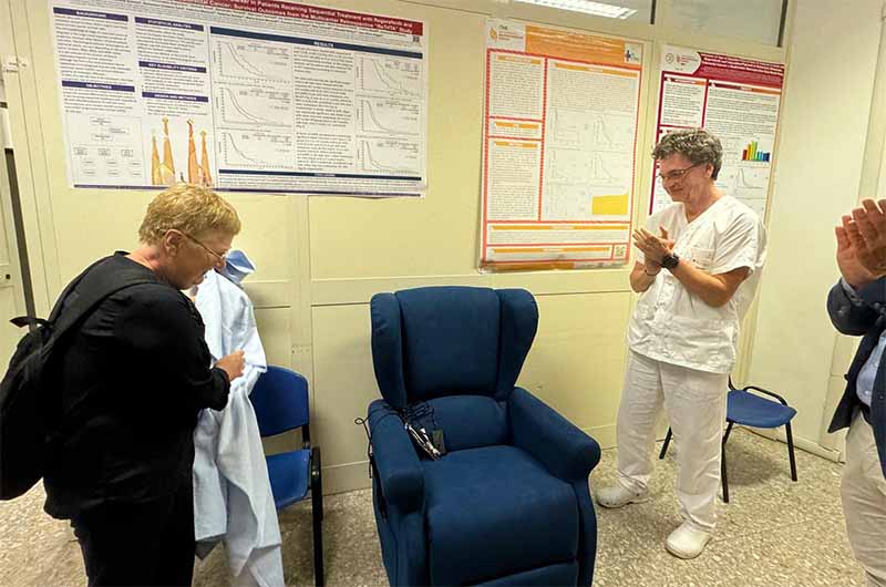 Stamattina, come annunciato, il Comitato “Insieme per l’Ospedale di Tarquinia”, per conto del movimento nato per difendere il nosocomio tarquiniese, ha donato la poltrona reclinabile per la somministrazione della chemioterapia al reparto oncologico dell’ospedale. L’evento ha visto la presenza importante del sindaco di Tarquinia Francesco Sposetti, accompagnato da altri esponenti della Giunta e del Consiglio Comunale, e per la ASL del Commissario Straordinario dottor Egisto Bianconi, del Primario del reparto di Oncologia dottor Enzo Maria Ruggeri e della Direttrice Sanitaria dottoressa Bernadette Macchione.