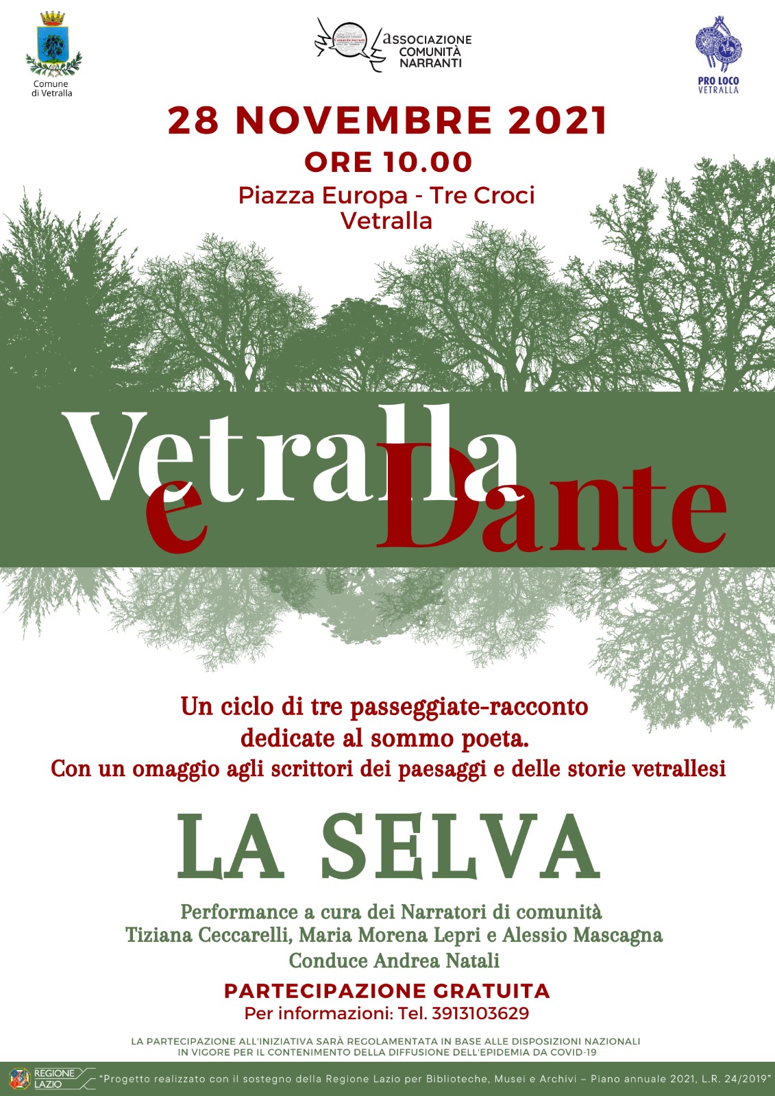 Vetralla e Dante” è una iniziativa realizzata in collaborazione con il Comune di Vetralla e ProLocoVetralla grazie al sostegno della Regione Lazio (l.r. 24/2019).