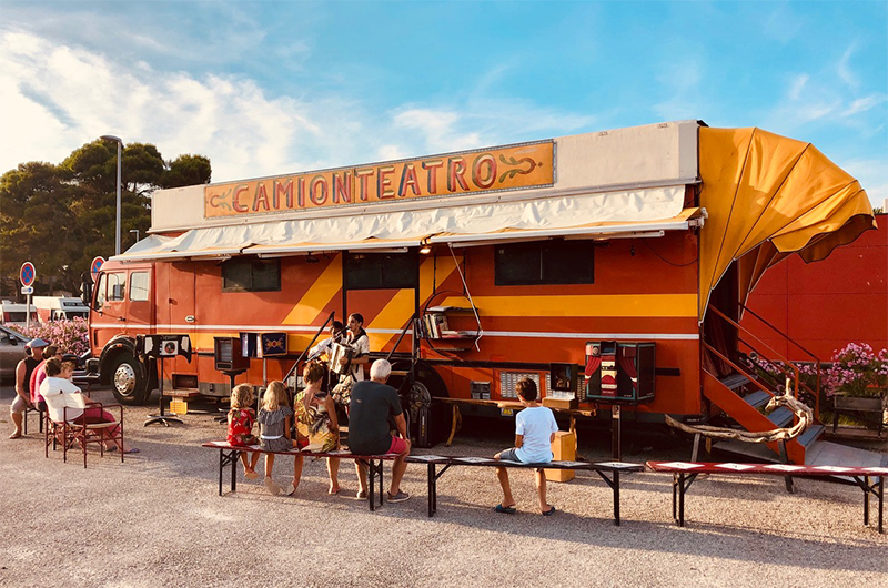Un’idea della compagnia Girovago&Rondella per promuovere il linguaggio del teatro di figura attraverso lo spettacolo dal vivo, il gioco, le tecniche di animazione con gli oggetti e la costruzione di teatrini emozionali. Nel 2024, secondo anno, verranno presentati 60 spettacoli su un bus allestito a teatro per 35 spettatori alla volta nei cortili delle scuole e 150 ore di laboratori nelle aule delle scuole della scuola primaria e secondaria di primo grado di diversi comuni della provincia di Viterbo: Piansano, Canino, Cellere, Arlena di Castro, Capranica e Vejano, che hanno aderito al progetto.