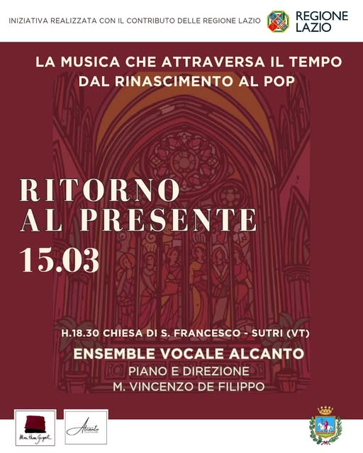 Domenica 15 marzo 2026 alle ore 18.30, nella chiesa di San Francesco, appuntamento con la musica e le emozioni del concerto “Ritorno al Presente – La musica che attraversa il tempo, dal Rinascimento al Pop”.