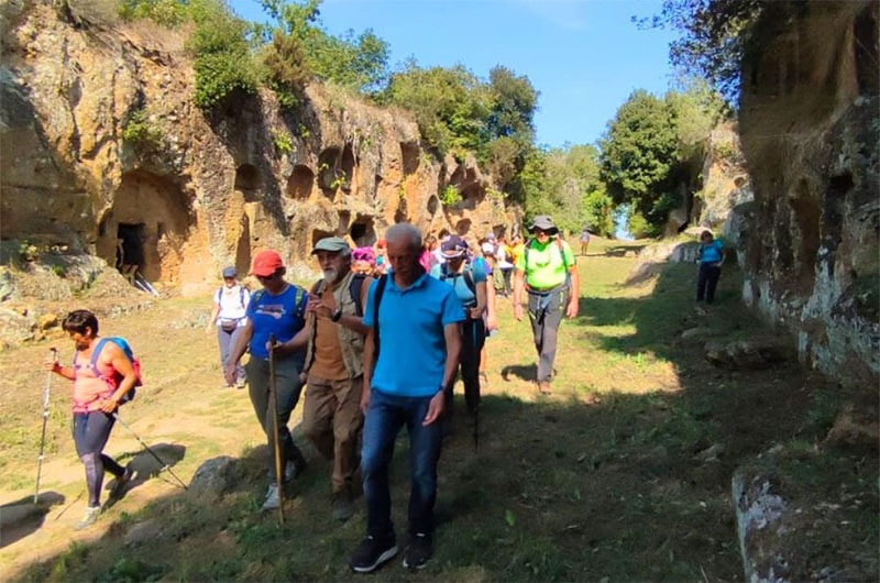 Si conclude, dopo il tutto esaurito, la splendida avventura della prima edizione di IT.A.CÀ Festival del Turismo Responsabile 2024 nel nostro territorio. Due tappe, quelle del 26-28 maggio e quella del 5-8 ottobre, terminate con bilancio oltre le aspettative. I due eventi outdoor, organizzati dal Bio-Distretto della Via Amerina e delle Forre insieme agli organizzatori del festival, l’hanno definito un evento corale. Una manifestazione all’insegna del cammino e della natura che chiaramente ha richiesto molta organizzazione e l’aiuto di tantissime persone. Tra queste ci sono le guide e gli accompagnatori che hanno seguito i camminatori in questi quattro giorni di cammino. Menzione speciale per Sergio Caciotta e Rossella Scordato dell’Associazione Orte Greenway per l’organizzazione. Fabiana Poleggi, guida turistica, GAE e accompagnatrice turistica; e l’accompagnatore Arnaldo Montanini di Cicli MontaniniEmanuele Palazzini di Esplora Tuscia, geologo e accompagnatore.