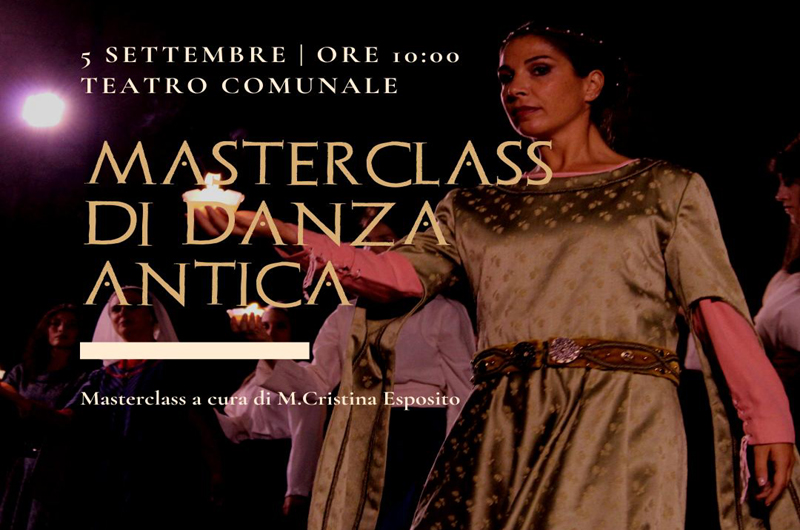 LABORATORIO DANZA ANTICA – Si intitolerà “Di guerra e di virtù. Omaggio in danza al Gattamelata” ed inizierà domenica 5 settembre alle 10 al teatro comunale Manini con Maria Cristina Esposito. La seconda lezione si terrà domenica 12 settembre alle 10 sempre al Manini, la terza domenica 19 settembre alle 10 al teatro. Un omaggio in danza al grande condottiero di Narni articolato in tre appuntamenti laboratoriali che proporranno lo studio teorico-pratico di danze di repertorio italiano e francese dei secc. XV-XVI inerenti al tema della guerra. Il programma prevede lo studio dello stile italiano del XV secolo; della trattatistica francese e italiana del XVI sec