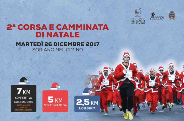 Seconda edizione a Soriano nel Cimino per la Corsa e Camminata di Natale, in programma martedì 26 dicembre 2017 e organizzata dalla Pro Loco in collaborazione con ASD Viterbo Runners e il patrocinio del Comune.