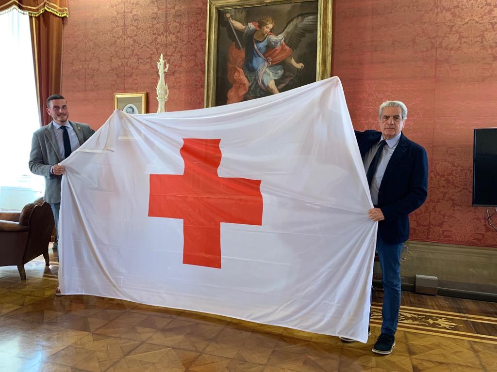 Croce Rossa in festa, esposta la bandiera a Palazzo dei Priori