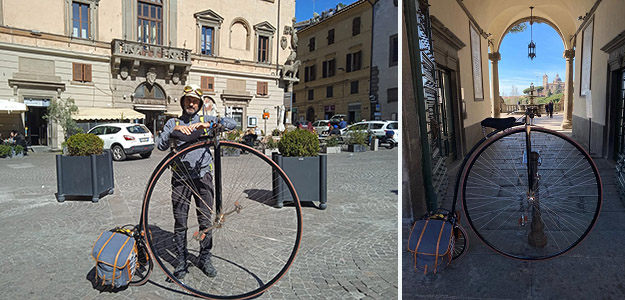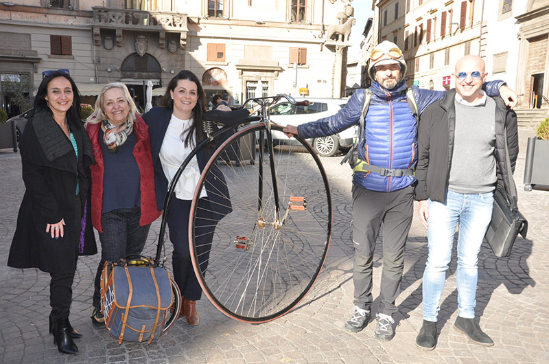 Da Capo Passero a Capo Nord, via Viterbo. Questo l’itinerario di viaggio di Massimo Zaffari, il pellegrino che, insieme alla sua “Penny”, ha raggiunto ieri la città dei papi. Ad accoglierlo in città è stata la consigliera comunale delegata alla promozione della Via Francigena e Giubileo 2025 Alessandra Croci, che spiega: “Il cammino che sta facendo Massimo è davvero particolare e affascinante, sia per il percorso e sia per il mezzo utilizzato. La sua “Penny”, così la chiama affettuosamente, è un biciclo appartenente alla famiglia dei velocipedi, con il quale è partito da Portopalo di Capo Passero, lungo la Sicilia Orientale, per risalire verso la Calabria tirrenica, Sala Consilina, Eboli, Salerno, Pompei, Napoli, Pozzuoli, Formia, Gaeta, Latina, Roma e Vetralla per poi arrivare a Viterbo e ripartire alla volta di Capo Nord”.