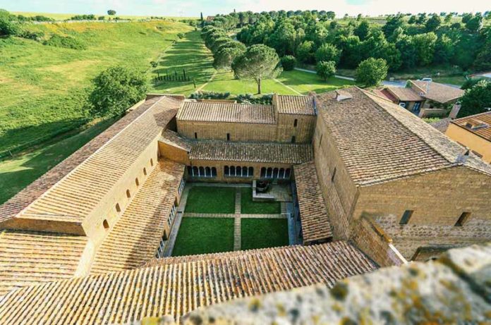 L’opera dell’uomo e quella della natura si fondono proprio come voleva San Benedetto da Norcia. Il monastero si affaccia sulla valle del fiume Marta. La presenza di sorgenti ha sicuramente incoraggiato gli insediamenti fin dall’epoca etrusca, romana e medievale.