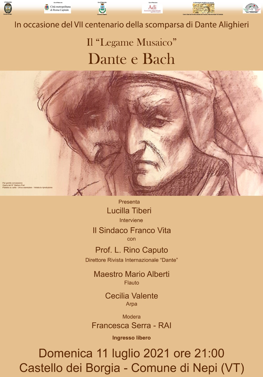 Domenica 11 luglio alle ore 18.30 in occasione delle celebrazioni del VII centenario della scomparsa di Dante Alighieri, l’associazione Culturale La Terzina, in partenariato con il Comune di Nepi e il patrocinio della Città Metropolitana di Roma Capitale, del Comune di Marino e dell’Adi (Associazione degli italianisti Gruppo Dante), presenta una serata evento in cui la poesia del sommo poeta si mescola con le melodie e le note di Johann Sebastian Bach.