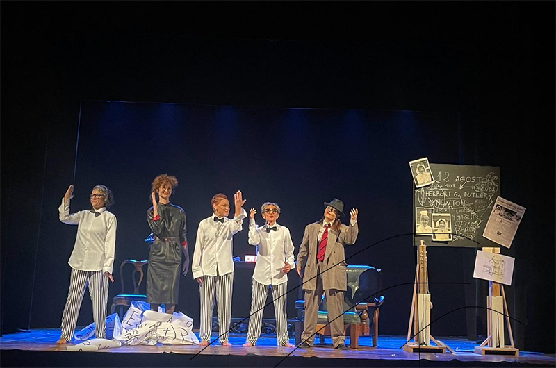 La scenografia, curata in ogni dettaglio, ricrea l’ambientazione di un’ala della clinica psichiatrica privata Les Cerisiers, refugium peccatorum di pazienti altolocati e abbienti, dove si consumano una serie di misteriosi ed efferati omicidi a scapito di tre infermiere. A indagare, il commissario Richard Voss che, in dialogo con la dottoressa Mathilde Von Zahnd, responsabile della struttura con la coscienza a doppio fondo, tesse interessanti e articolati ragionamenti sul sottile confine tra follia, scienza e potere, andando ben oltre la natura dei crimini compiuti dai tre ospiti della clinica, accomunati dalla passione per la fisica, al punto di credersi Einstein, Newton o di sentirsi persino in comunione e in contatto con re Salomone. A vivacizzare i tempi scenici, incursioni di musica elettronica e rock con una chiusura azzeccata, affidata al celebre pezzo anni ’80 Rock ‘n’ Roll Robot. Credibili nei diversi ruoli le cinque attrici sul palco: Vera Anelli, Sara Donato, Eleonora Faccenda, Federica Lucci, Barbara Stefanoni, versatili e a proprio agio anche nel dar voce e sembianze ai personaggi maschili. Lo spettacolo, alla fine, non offre allo spettatore un pensiero risolto della storia, ma lo sollecita alla critica e al ragionamento su temi assolutamente attuali. Un’opportunità preziosa per chi ha a cuore il teatro contemporaneo.