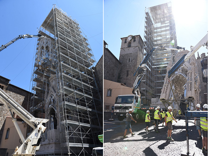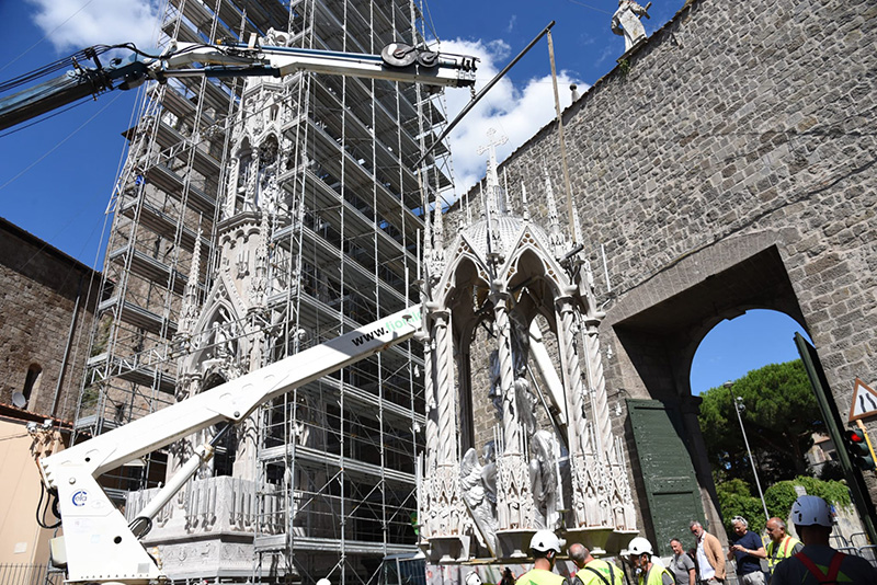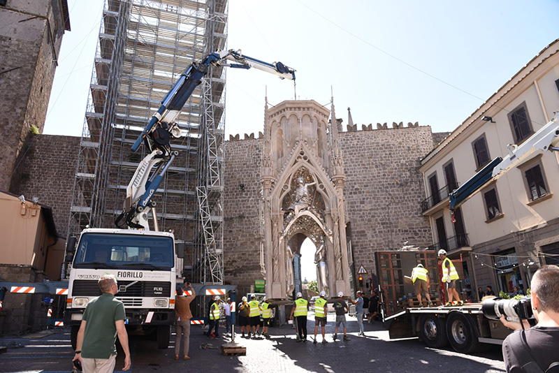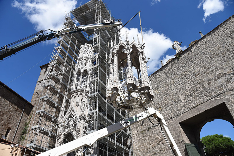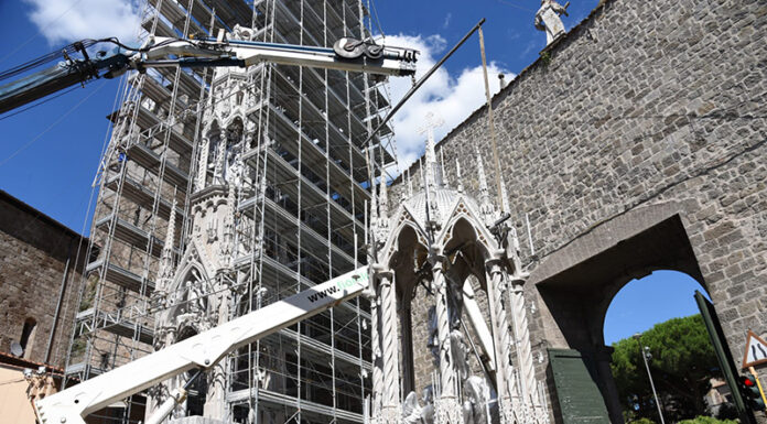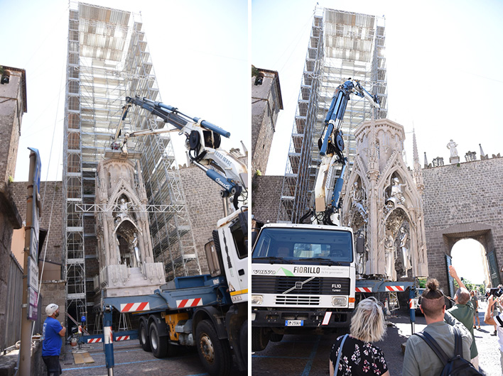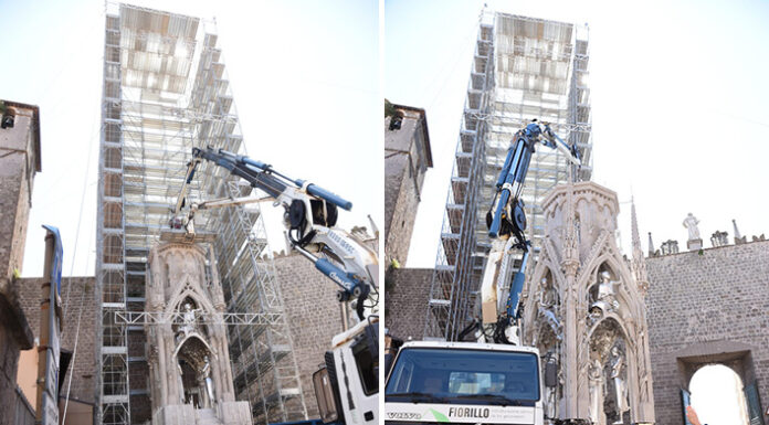 L’abbassamento di alcuni punti della temperatura ha reso più scorrevole il lavoro di montaggio a San Sisto di Dies Natalis la Macchina di Santa Rosa che prende posto nella sua postazione in attesa del 3 settembre. Presenti i costruttori Fiorillo senior e Fiorillo junior, l’deatore Raffaele Ascenzi, il presidente del Sodalizio dei Facchini Massimo Mecarini, il capo facchino Luigi Aspromonte e la sindaca di Viterbo Chiara Frontini. La cerimonia e benedizione della statua di Santa Rosa questo mercoledi 9 luglio  sera alle 21.30