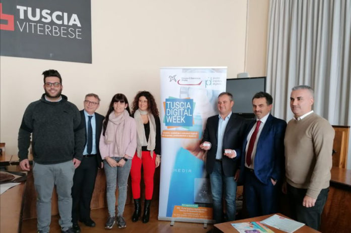 La mattina del 20 novembre, presso la Sala Consiliare della Camera di Commercio di Viterbo, è stato presentato il programma per l’evento Tuscia Digital Week, quest’anno alla sua seconda edizione. Sono intervenuti il presidente della Camera di Commercio di Viterbo, Domenico Merlani; il segretario generale della Camera di Commercio, Francesco Monzillo; il digital coordinator del Punto Impresa Digitale di Viterbo, Luigi Pagliaro, i quali hanno illustrato il programma e lo scopo della manifestazione che avrà luogo dal 25 al 29 novembre.