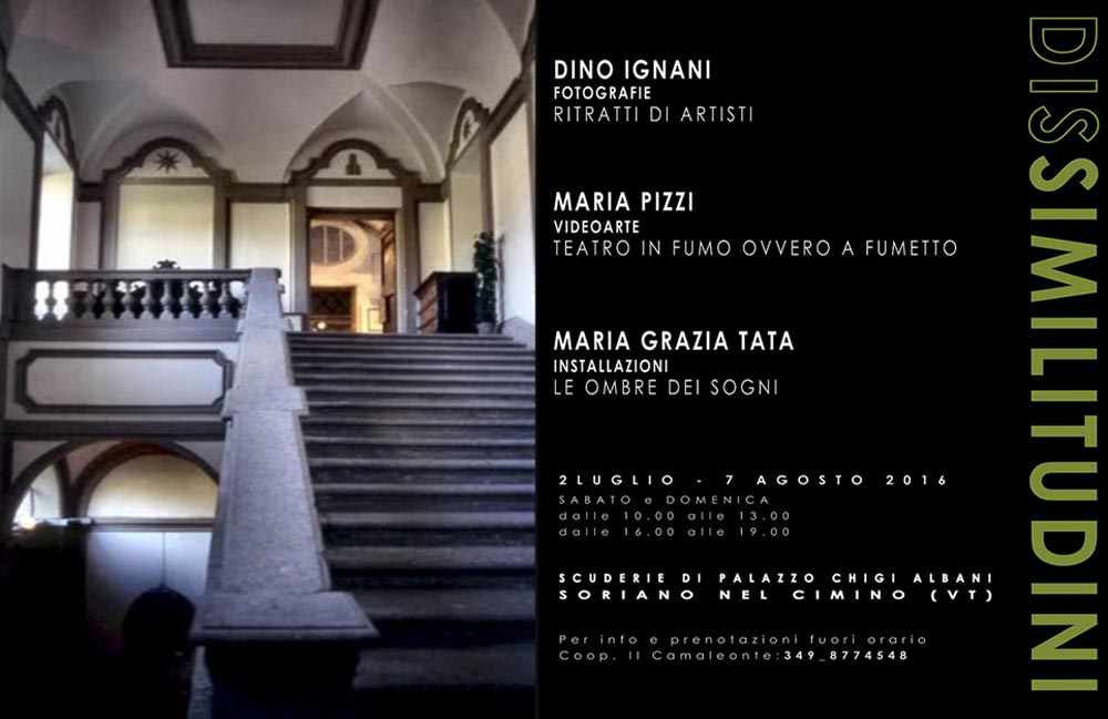 Dino Ignani si inserisce completando una trilogia dialettica nell’economia delle D I S S I M I L I T U D I N I Aggiunge quelli di Pizzi e di Tata ai ritratti d’artista della speciale galleria fotografica che ravvisa l’indole attraverso i visi, le attitudini, il confronto tra i soggetti attivi della creazione e gli esiti della stessa. Innesta dunque un dialogo, si affianca come interlocutore-esegeta, registra il rapporto stretto tra artefice e opera, attraverso una sorta di ricerca metalinguistica per immagini. Osservatore-osservato-soggetto-atto-oggetto.