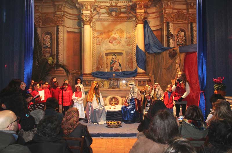 E’ stata un successo la Rievocazione vivente della Natività e dell’Epifania dal titolo “E nel cielo apparve una stella…” che si è svolta a Villa San Giovanni in Tuscia Domenica 5 Gennaio, all’interno della splendida chiesa seicentesca di Santa Maria della Neve. Nato inizialmente da un’idea di Angelo Capuzzi, l’evento è stato proposto e organizzato dall’Associazione Scientifico-Culturale “Antiqua Tellus-Centro Studi Mons. Simone Medichini”, in collaborazione con la Parrocchia di San Giovanni Battista, i bambini e le bambine del Catechismo, e il sostegno dell’Amministrazione Comunale, che ha anche inserito l’evento nel calendario delle manifestazioni culturali natalizie. Alle ore 15.00 nella chiesa gremita di pubblico ha avuto inizio lo spettacolo, al quale hanno partecipato, portando i loro saluti, il Sindaco Dott. Fabio Latini e il Parroco Don Paolo Canalis. La rappresentazione si è svolta in due parti principali: nella prima dopo un breve canto assolo di introduzione eseguito dalla scrivente, ha avuto inizio la rievocazione vera e propria della Natività di Gesù Bambino nella grotta di Betlemme, con ragazzi e bambini che hanno interpretato i ruoli di Maria, Giuseppe, i pastori e gli Angeli, tutti abbigliati con i tipici costumi dell’epoca. Poi è stata la volta dei Re Magi, che guidati dalla stella cometa sono arrivati fino alla capanna di Gesù Bambino e gli hanno offerto i loro preziosi doni, oro, incenso e mirra. Tutte le scene sono state animate dalla voce narrante fuoricampo della sottoscritta, recitando alcuni brani del Vangelo di Luca e di Matteo riguardanti la nascita di Gesù e il viaggio dei re Magi fino a Betlemme. Nella seconda parte al suono di “Tu scendi dalle Stelle” sono entrati in scena i bambini e le bambine, ed ha avuto inizio la loro esibizione in coro per dedicare a Gesù alcune tra le più belle canzoni natalizie. I canti si sono alternati a pezzi musicali suonati da una piccola orchestra formata da giovanissimi suonatori di chitarra, violino e flauti. I bambini e le bambine hanno poi dedicato a Gesù alcune poesie piene di sentimento, tra le quali la più toccante è stata quella di Santa Madre Teresa di Calcutta sul Natale. Il gran finale dello spettacolo si è svolto all’insegna dell’allegria. Per festeggiare la tradizionale Befana tutti i bambini hanno sfilato uno accanto all’altro, battendo le mani al suono della canzone “La chiamano Befana”, e spontaneamente anche il pubblico ha partecipato unendosi al battito di mani. La manifestazione si è conclusa con la consegna ai bambini degli Attestati di partecipazione, da parte del Sindaco Fabio Latini, del Parroco Don Paolo Canalis e del Vicepresidente di “Antiqua Tellus” Angelo Capuzzi. Come Presidente dell’Associazione desidero ringraziare il Sindaco e il Parroco per il loro sostegno, tutti coloro che hanno collaborato alla realizzazione della Rievocazione, soprattutto i soci Angelo Capuzzi e Giancarlo Ventura per l’allestimento scenografico, le luci e le musiche, Pier Luigi Olivieri e sua figlia Alba, Marcello Caporossi, Mario Gasbarri, Rita Paccaroni, le catechiste Elvira e Rossella, e tante altre persone che a vario titolo hanno contribuito alla riuscita della manifestazione. Un pensiero speciale di gratitudine va soprattutto ai bambini e alle bambine che si sono esibiti con grande bravura, spontaneità ed entusiasmo.