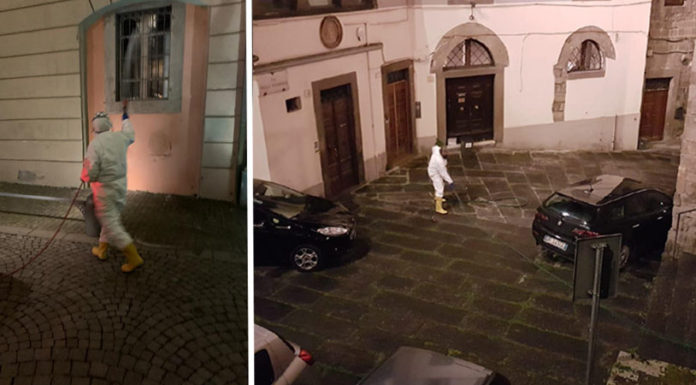 Venerdi 27 marzo dalle 21, nel centro urbano di Viterbo è partito l’intervento di sanificazione e disinfezione di strade e marciapiedi da parte degli operatori di Viterbo Ambiente, presente anche il sindaco Giovanni Maria Arena. L’intervento come previsto è proseguito nella nottata. Nei prossimi giorni verrà garantita la copertura del servizio sull’intero territorio comunale, frazioni comprese. Quello di ieri si configura come una seconda fase. L’intervento di sanificazione e disinfezione viene realizzato dalla ditta specializzata in materia, con prodotti disinfettanti antivirali certificati non tossici, e con caratteristiche di abbattimento di virus, protozoi, spore, eccetera, attraverso l’utilizzo di varie tipologie di mezzi, quali atomizzatori a spalla, atomizzatori su furgoni e trattamento di disinfezione a lancia al fine di irrorare il prodotto.
