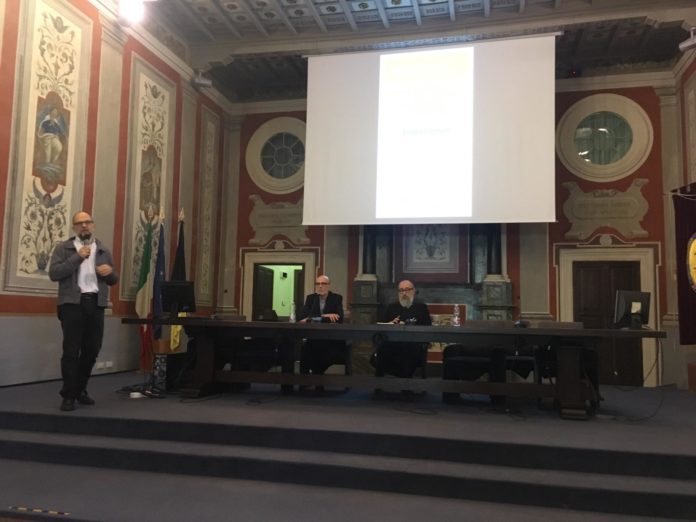 Clementi narra il suo viaggio nel mondo della scrittura e della canzone alla platea di studenti che affollano l’Aula Magna di Santa Maria in Gradi e conquista i meno giovani che hanno trovato, nelle porte aperte dell’Ateneo, un momento per vivere la cultura in prima persona. Emidio Clementi, fondatore di uno dei primi gruppi rock italiani Massimo Volume, oggi vive a Bologna, dove insegna scrittura creativa all’Accademia di Belle Arti, ma le sue origini sono marchigiane, di una provincia che gli stava stretta e di una scuola in cui non eccelleva. «Ed è per questo che dico sempre ai ragazzi di trasformare i limiti in opportunità». Ad illuminarlo, quando quello che scriveva restava nel suo cassetto, con la timidezza di chi, come dice lui non “vuole sputtanarsi”, è stato Il Primo dio di Emanuel Carnevali. «Lavoravo nel retro di un ristorante, quando una persona mi ha detto, devi leggere questo libro». E da lì è partito tutto. L’autore paroliere dei Massimo Volume si sofferma sull’ispirazione: “non riesco a scrivere se non di qualcosa che sia reale, traslare la quotidianità in qualcosa di altro è per me la scrittura”. Sollecitato dal professor Pifferi, Clementi si sofferma sull’importanza del viaggio, dell’andare altrove, e ricorda la sua esperienza giovanile in Svezia, un posto dove non ha prodotto nulla e solo al ritorno “è come se una una valanga di parole fosse riuscita a rompere una diga”.