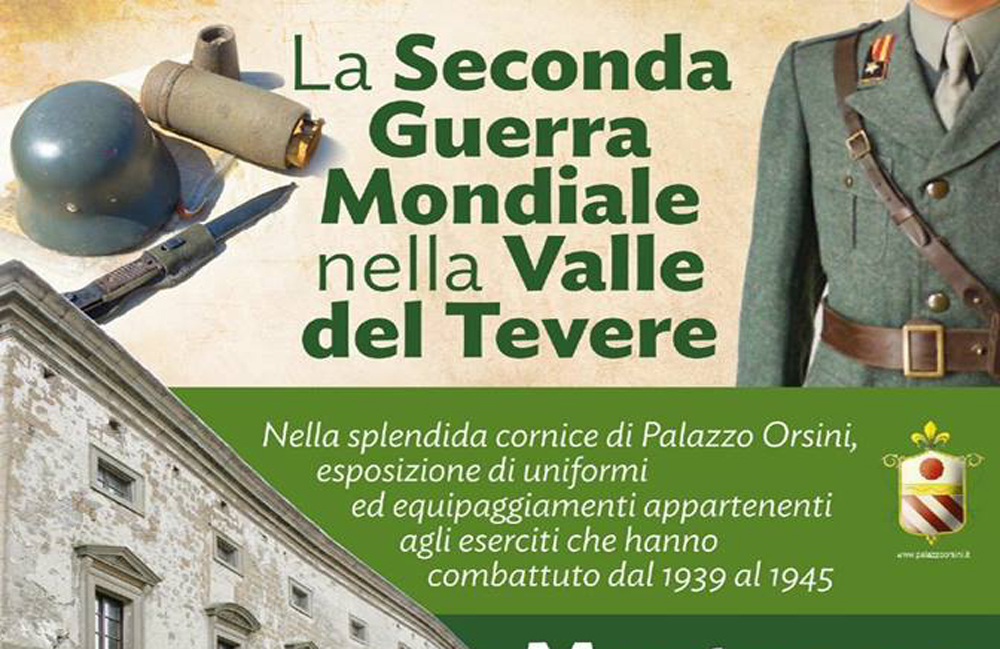 Una esposizione di uniformi ed equipaggiamenti appartenenti agli eserciti che hanno combattuto dal 1939 al 1945 che ricostruiscono lo scenario del periodo,dando la possibilità di poter meglio apprezzare gli eventi dell’epoca che riportano ad una guerra, con battaglie importanti e sanguinose, ricostruite nella loro rilevanza militare e strategica. Ma pure una guerra che prese nel mezzo la popolazione, la quale pagò un prezzo altissimo in termini di morti, di feriti e di distruzioni. Il volume di Alvaro Tacchini edito da Petruzzi Editore ne traccia il tratto storico e si fonda su una copiosa documentazione d’archivio, in gran parte inedita e include anche le schede, suddivise Comune per Comune, delle vittime civili della seconda guerra mondiale e dei partigiani che combatterono nell’Alta Valle del Tevere. L’esposizione allestita nel grazioso borgo di Mugnano in Teverina, nelle Sale di Palazzo Orsini sabato 10 e domenica 11 giugno è curata da Luciano e Andrea Fosci. Orario 9,00-13 -15.30 19.00. I visitatori avranno la possibilità di concludere la visita con una sosta alla Bottega degli Orsini che fornisce un selezionato banco d’assaggio dei prodotti tipici della Tuscia.