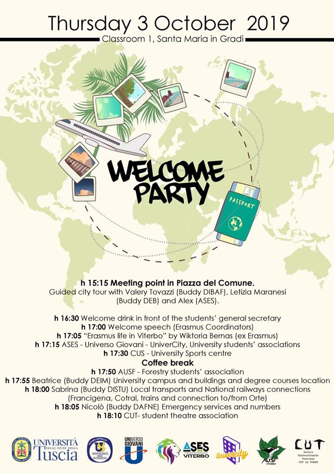 Thursday 3 October Universo Giovani organizes a welcome party for Erasmus students coming to Viterbo.