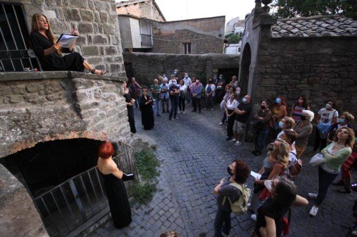Le narratrici di comunità Maria Morena Lepri, Barbara Sarti e Simona Soprano condurranno il pubblico lungo un itinerario nel tempo e nello spazio, attraversando il centro storico della città, al fianco della nobile poetessa cinquecentesca e di altre donne a lei legate da fili reali o immaginari: Olimpia Maidalchini, Veronica Gambara, Giulia Farnese. A loro cura anche l’elaborazione dell’intero impianto della passeggiata, la cui regia – anche questa volta – è affidata a Laura Antonini, che darà voce ai sonetti e alle letture. Ospite d’onore, il musicista Luciano Orologi.