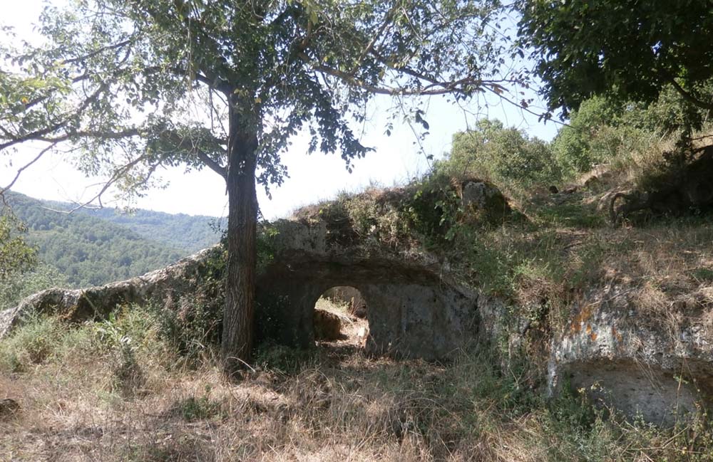 La componente più pittoresca dell’ abitato medioevale è quella delle grotte, scavate a schiera sul bordo superiore del colle. Viste di fronte somigliano ai cento occhi di un Argo mitologico, a profonde pupille sovrastate da lunghe ciglia di tufo sottile e da una folta capigliatura verde. Viste da vicino mostrano i segni dell’interramento e delle frane, che ne limitano la visita. Alcune grotte hanno un solo vano e denunciano l’antica origine etrusca di tombe con i letti rocciosi per la deposizione dei defunti. Altre grotte, di forma allungata, sono state probabilmente utilizzate come ricoveri per gli animali. L’ultima presenza segnalata in questo abitato è quella delle vie cave, le tagliate che danno accesso alla rupe insieme con il largo fossato che la difende. Profondamente incise nel tufo, le vie cave sono trincee artificiali che consentono di superare le ripide pareti del colle altrimenti inaccessibili. .