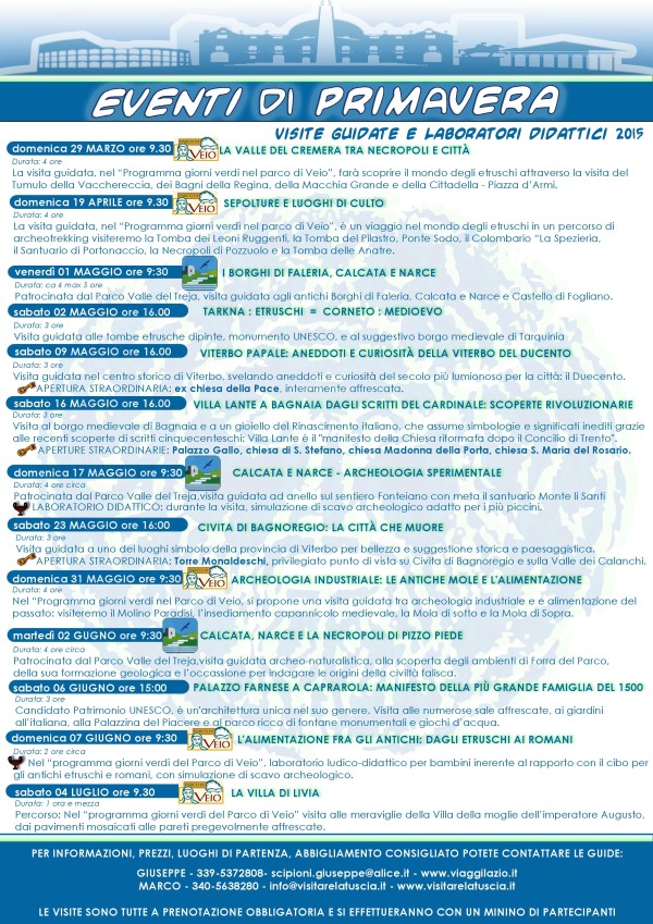 Le visite sono tutte a prenotazione obbligatoria e si effettuano con un numero minimo di partecipanti. Info www.visitarelatuscia.it -tel. 34056380280