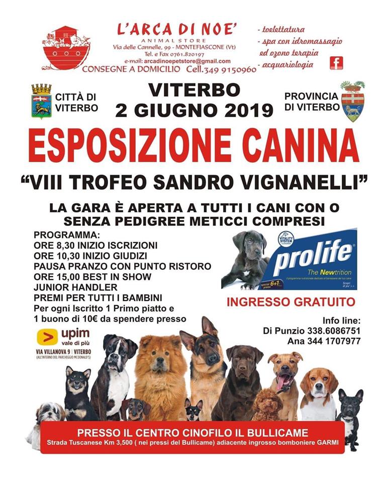 Domenica 2 giugno si terrà presso il Centro Cinofilo Bullicame l’ Esposizione Canina “VIII trofeo Sandro Vignanelli”.La gara è aperta a tutti i cani con o senza pedigree meticci compresi.