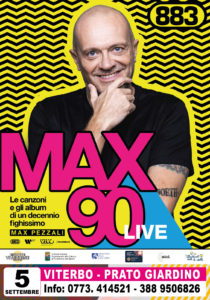 Successi che hanno coinvolto intere generazioni, attraverso un viaggio musicale che vuole far rivivere quelle emozioni e storie che soltanto Pezzali ha saputo raccontare così bene nei primi 4 album degli 883. Gli appuntamenti dell’estate 2021 avranno come protagonisti assoluti gli anni ’90, con l’impianto scenico e le canzoni che hanno segnato un’epoca raccontata dallo stesso Pezzali nel libro “Max90. La mia storia. I miti e le emozioni di un decennio fighissimo”. Costo biglietti: Poltronissima euro 60,00 + 9.00 = 69,00 – Prima Poltrona euro 47,80 + 7,20 = 55,00 – Seconda Poltrona euro 35,00 + 5,00 = 40,00.
