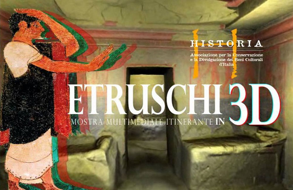Una mostra multimediale itinerante sugli Etruschi ospitata presso la sala espositiva dell’ex Chiesa degli Almadiani, promossa dal Comune di Viterbo e organizzata dall’associazione Historia visitabile tutti i giorni (eccetto il lunedì), dalle 10 alle 13 e dalle 15,30 alle 19,30. L’ingresso è libero . Realizzata interamente con tecnologia 3D, con la collaborazione tecnica della Fondazione Bruno Kessler (FBK) di Trento. Negli ultimi anni è stata al Museo Nazionale di Bruxelles MRAH, con oltre 30.000 visitatori, al Museo delle Scienze di Trento, dove ha registrato 12.000 presenze in quattro mesi, contro le 11.000 annuali del sito che la ospitava, e a Stoccolma al Museo Nazionale del Mediterraneo (Medelhavseet), contando 103.000 presenze. Completamente multimediale, l’allestimento 2015 si avvale della tecnologia anaglifica (occhiali bicolore) per consentire agli utenti di fare esperienze 3D dei principali siti archeologici etruschi, ricostruiti con la tecnologia del laser scanning, in modo da essere visti come realmente sono nei siti originali.