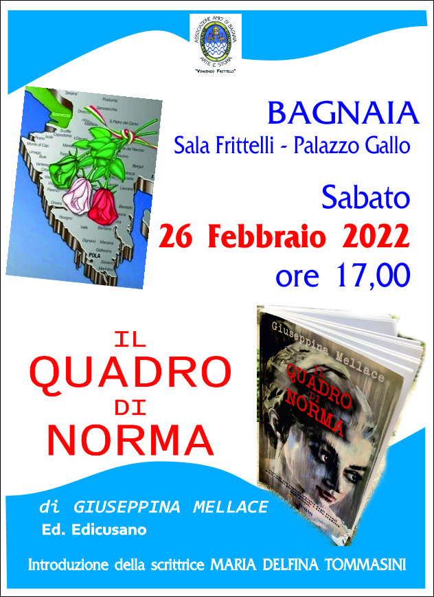 Sabato 26 febbraio alle ore 17.00 nel salone Frittelli di Palazzo Gallo a Bagnaia sarà presentato il libro di Giuseppina Mellace “Il quadro di Norma”, alla presenza dell’autrice.
