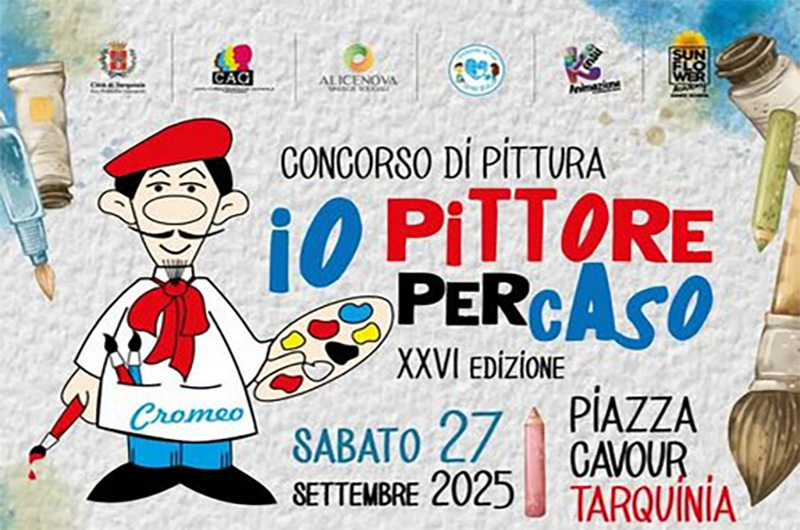 L’arte e la creatività protagoniste a Tarquinia con la XXVI edizione di “Io pittore per caso”, in programma sabato 27 settembre 2025. L’iniziativa è promossa dall’assessorato alle politiche giovanili del Comune di Tarquinia, in collaborazione con il Centro di aggregazione Giovanile e la cooperativa sociale Alicenova. “Con questa manifestazione – sottolinea l’assessora alle politiche giovanili Sara Corridoni – vogliamo valorizzare la creatività dei bambini e dei ragazzi, stimolare la partecipazione attiva e offrire momenti di socialità attraverso il linguaggio universale dell’arte”.