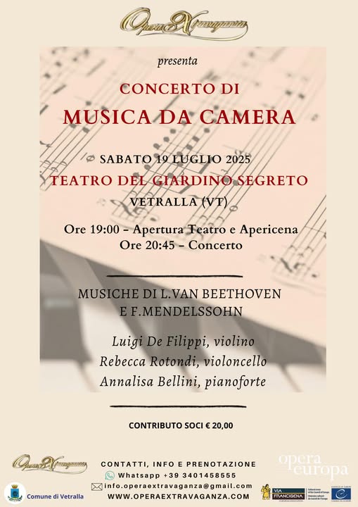Concerto di Musica da Camera sabato 19 luglio al Teatro del Giardino Segreto a Vetralla.