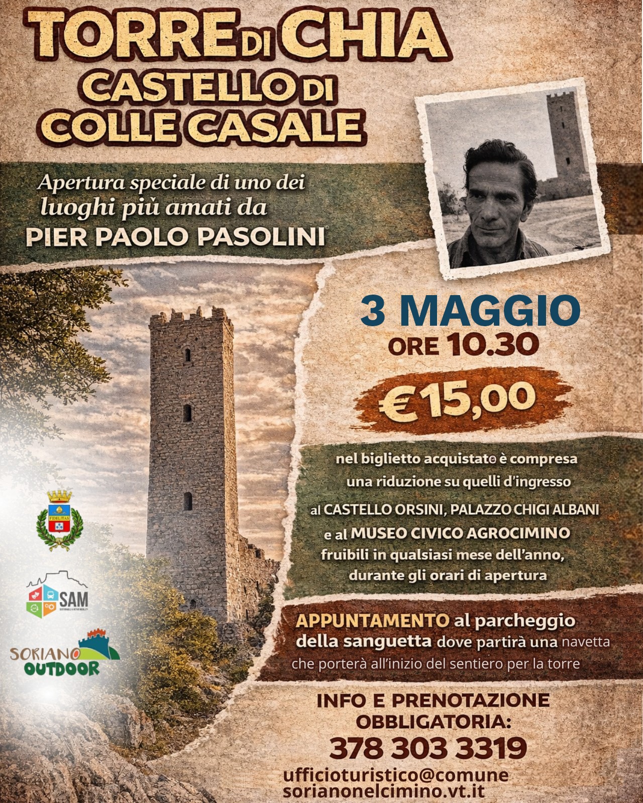 Prenotazione obbligatoria: 378 3033319 – ufficioturistico@comunesorianonelcimino.vt.it
