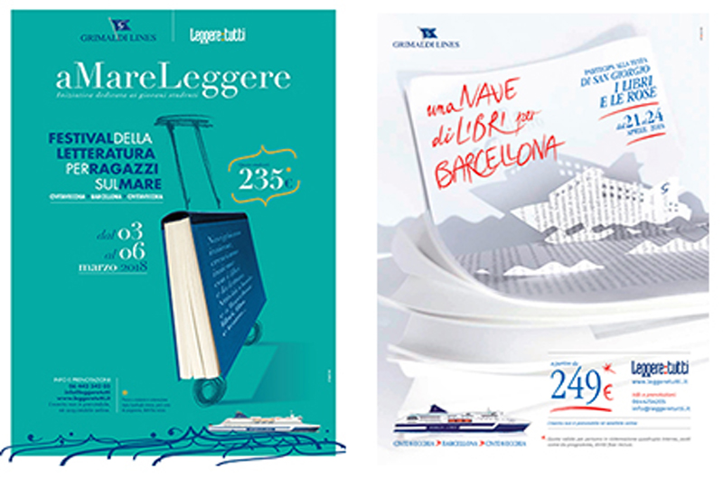 I libri, il mare, Barcellona: il mensile “Leggere:tutti” da nove anni organizza Una Nave di Libri per Barcellona e da sei anni aMare Leggere, Festival della letteratura per ragazzi sul mare, viaggi letterari realizzati in collaborazione con Grimaldi Lines e con il patrocinio dell’Istituto italiano di Cultura di Barcellona. Si tratta di esperienze indimenticabili per migliaia di viaggiatori (famiglie, scuole o amici) che nel corso del tempo sono approdati a Barcellona dopo una singolare navigazione all’insegna dei libri.