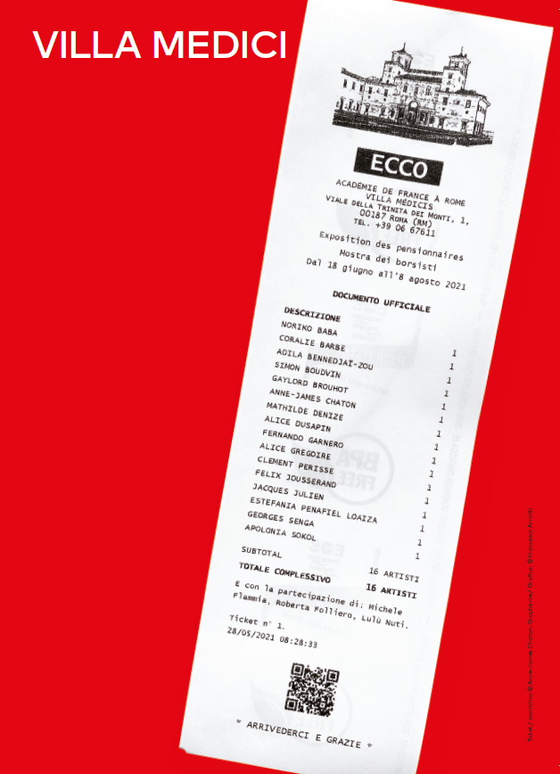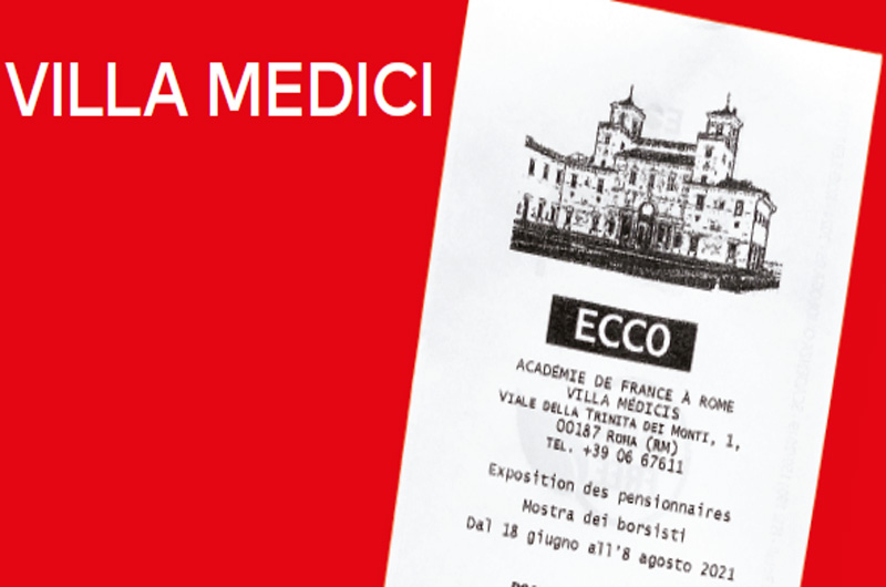 ECCO: l’esposizione dei borsisti dell’Accademia di Francia a Roma quest’anno assume la forma di un’esclamazione entusiasta che restituisce e prolunga il lavoro di un anno a Villa Medici. Presentata dal 18 giugno all’8 agosto 2021 a cura di Laura Cherubini, l’esposizione riunisce le realizzazioni dei sedici artisti, creatori e ricercatori al termine di un anno di residenza di creazione, sperimentazione e ricerca a Villa Medici.