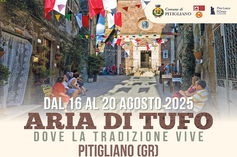 In quuesta calda estate, per chi il vacanziero agosot lo vive girovagando qua e la, c’è un luogo ed un evento che meritano di essere scelti, si tratta della prima edizione di ARIA DI TUFO – Dove la tradizione vive, a Pitigliano nella provicnia di Grosseto, dal 16 al 20 agosto 2025.