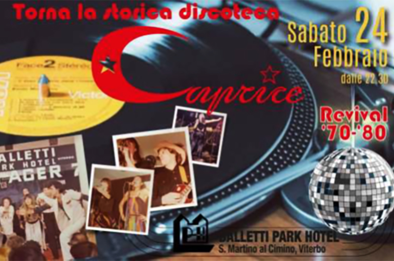 della storica Discoteca Caprice, in programma il 24 febbraio. La discoteca, molto