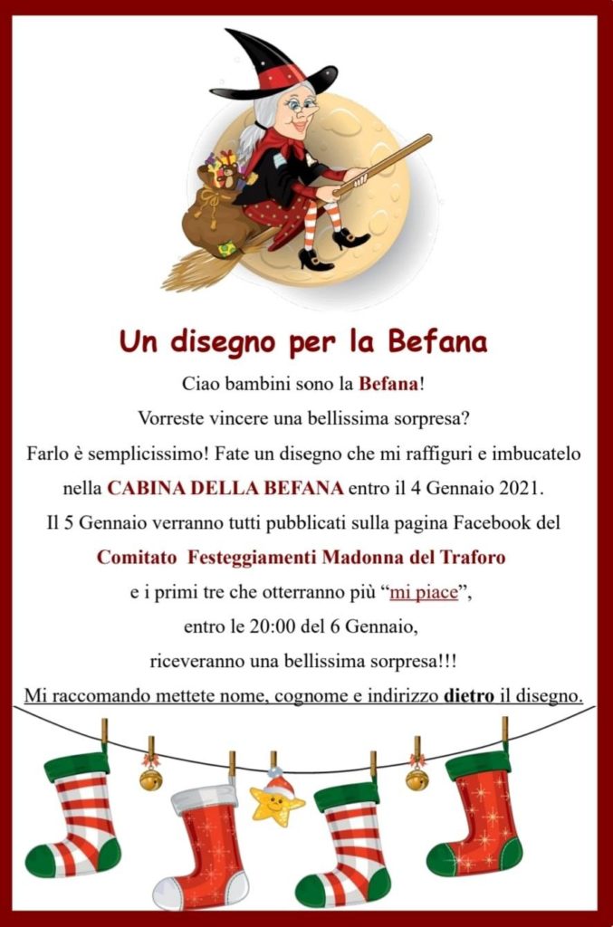 Un disegno per la Befana, il contest di idee per bambini promosso dal Nuovo Comitato Madonna del Traforo di Grotte Santo Stefano: lunedì 4 gennaio ultimo giorno per poter imbucare i disegni nella  cabina della Befana.