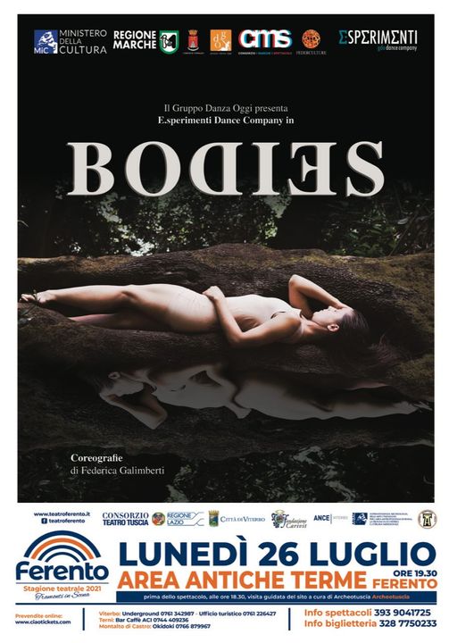 Al Teatro Romano di Ferento per i Tramonti in scena, lunedì 26 luglio, area Terme ore 19.30 a cura di Esperimenti Dance Company “BODIES”, balletto da brivido, un viaggio di energia e coinvolgimento nel linguaggio personale  e travolgente del corpo. Da non perdere..