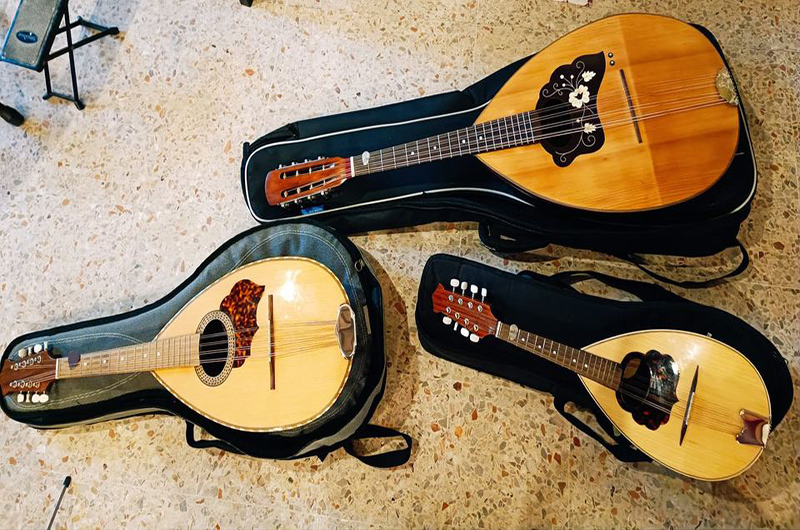 Chitarra, chitarra battente, mandoloncello, mandola, mandolino.