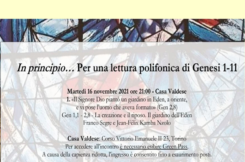 Inizia martedì 16 novembre a Torino il ciclo di incontri sui primi 11 capitoli del libro della Genesi, >frutto della collaborazione tra Comunità Ebraica di Torino, Chiesa Valdese di Torino, Chiese Battiste di Torino, Amicizia Ebraico-Cristiana, Centro Teologico Padri Gesuiti di Torino e Fondazione Carlo Maria Martini. La proposta si ricollega all’esperienza degli «incontri a due voci ebraico-cristiani», riprendendone l’ispirazione in una nuova modalità dopo la pandemia.