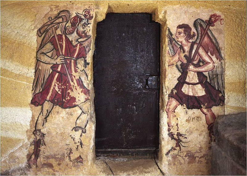Foto: Charun (‘etruschizzazione’ del greco Charon) & Vanth, due demoni inferi e psychopompoi (traghettatori delle anime nell’aldilà).