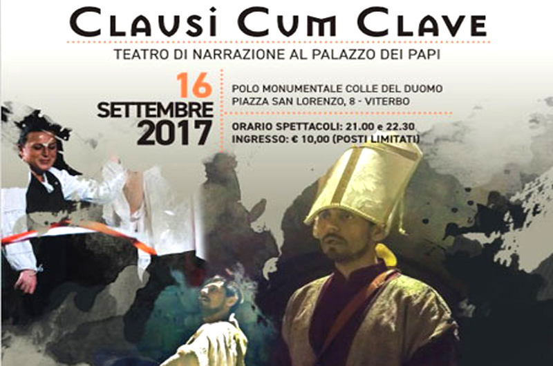 La società Archeaores e la Compagnia teatrale Tetraedro, per la prima volta insieme, presentano “Clausi cum clave”: lo spettacolo teatrale di narrazione che racconta la storia di Viterbo e dei Papi che qui sono vissuti.
