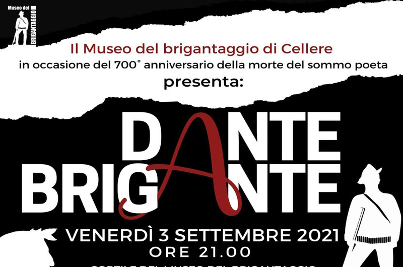 Nel settecentesimo anniversario della morte di Dante, il museo di Cellere propone al suo pubblico uno stuzzicante dialogo a distanza tra il sommo poeta e il “re del Lamone”, il brigante Domenico Tiburzi. Un percorso narrativo che unisce e intrama la “Comedìa” dantesca con brani di letteratura popolare e tradizione orale incentrati sulla figura del celebre brigante. A mettere in relazione le due figure l’immagine della selva, i racconti a tinte forti che popolano le pagine dantesche e le storie che hanno per protagonista il fuorilegge altolaziale.