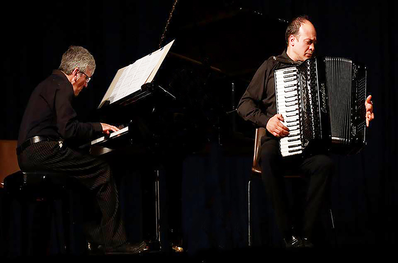 Protagonista indiscusso del sesto concerto della XVIII edizione del Beethoven Festival Sutri sarà il Duo Gardel, una combinazione eccezionale quanto ricercata del campione del mondo di fisarmonica Gianluca Campi (vincitore del Trofeo Mondiale nel 2000 in Portogallo) e del celebre pianista spezzino Claudio Cozzani.  ”Danzango” è il titolo dell’appuntamento in programma venerdì 12 luglio ore 21 (Chiesa di San Francesco), in compagnia di questo prestigioso duo formatosi nel 2005 che prende il nome dal celebre compositore di tango argentino Carlos Gardel, in un organico cameristico molto originale dall’efficace e avvincente impatto timbrico. Un viaggio nella musica da danzare, dal ‘600 al ‘900, per finire a ritmo di tango: da qui il titolo “Danzango” per questo suggestivo percorso del Duo Gardel. Il tipo di repertorio proposto è principalmente basato su composizioni scritte originalmente per altri organici, arrangiate ed elaborate dallo stesso duo che a Sutri proporrà Les Sauvages di Rameau, Valse Triste di Vecsey, Habanera dalla Carmen di Bizet, Danses Tziganes di Rachmaninoff, Danza del Molinero di De Falla, Valzer da “Masquerade – Suite” e Danza delle Spade di Kaciaturian, Sus ojos se cerraron e Volver di Gardel, Tango pour Claude di Galliano,  Milonga for three, Rio SenaVerano Porteno, Meditango e Violentango  di Piazzolla.  Il duo, fin dal suo esordio, si è imposto all’attenzione del pubblico e della critica per l’originalità della formazione e del repertorio proposto e per le spiccate qualità espressive e virtuosistiche delle proprie interpretazioni. I due musicisti, entrambi liguri, svolgono singolarmente da molti anni un’intensa attività come solisti ed in varie formazioni cameristiche esibendosi in importanti sedi concertistiche in Italia ed all’estero. Il duo ha al suo attivo centinaia di concerti per importanti associazioni e festival internazionali. La casa discografica Il Melograno Records di Roma ha pubblicato il CD audio “Duo Gardel live” che ha ricevuto grandi consensi. Inoltre il Duo Gardel ha partecipato alla trasmissione di Radiotre “Piazza Verdi”, suonando in diretta radiofonica composizioni di Gardel e Piazzolla.
