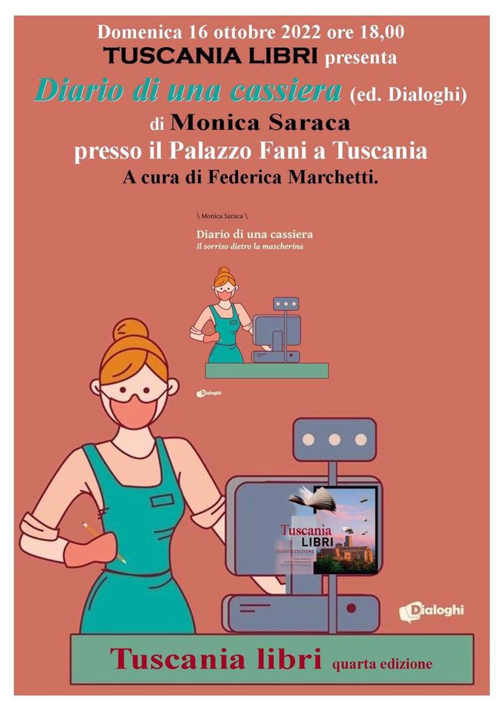 Domenica 16 Ottobre alle ore 18.00  a Tuscania Libri nella sede di Palazzo Fani  verrà presentato il libro di Monica Saraca “Diario di una cassiera”(Dialoghi edizioni), la narrazione autentica di una esperienza forte  vissuta nel periodo del Covid-19. L’autrice dialogherà con la scrittrice Federica Marchetti.