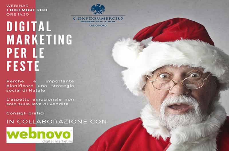 “Digital marketing per le feste”, nuovo webinar gratuito con Webnovo e Confcommercio Lazio Nord