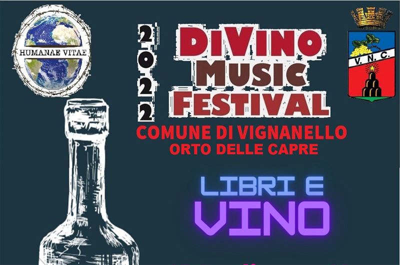 Potrebbe essere un'immagine raffigurante bevanda e il seguente testo "HUMANAE VITAE so DIVINO MUSIC FESTIVAL COMUNE DI VIGNANELLO ORTO DELLE CAPRE LIBRI E UINO 15 Luglio ore 19 A TAVOLA CON GLI ETRUSCHI L'ARCHEOCUOCA CRISTINA CONTE ACCOMP LA PRESENTAZIONE DEL LIBRO DI GIORGIO FRANCHETTI 16 Luglio ore 19 IPPOCRASSO, STORIA DI UN VINO SPEZIATO .LO SCRITTORE SIMONE DE FILIPPIS PRESENTA IL LIBRO DI SANDRA IANNI"