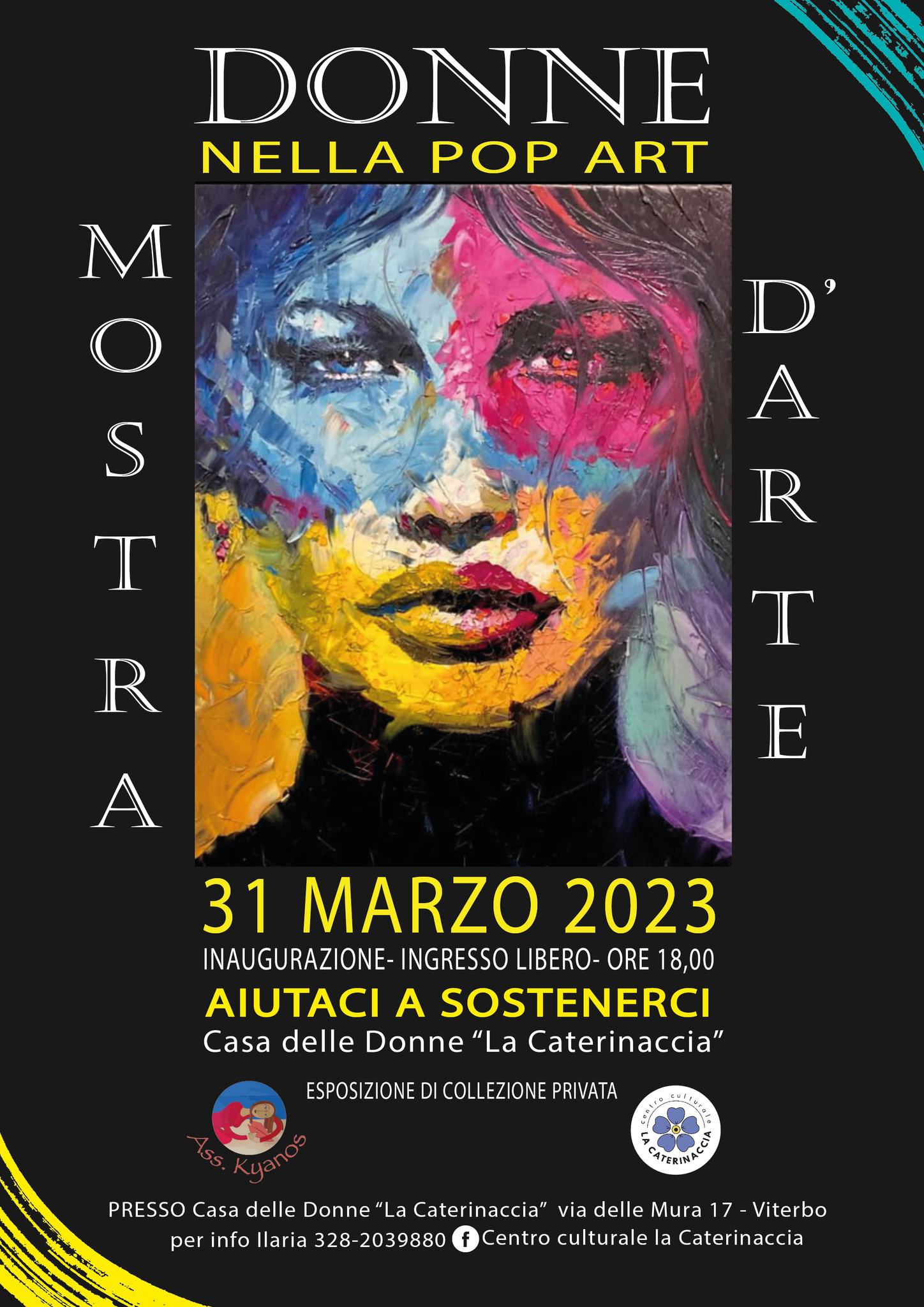 Venerdì 31 marzo, alle ore 18.00, al Centro culturale la Caterinaccia ha inaugurato la mostra “Donne nella pop art”, esposizione di collezione privata, che sarà allestita fino a venerdì 14 aprile. I quadri esposti sono in vendita e una parte del ricavato sarà devoluto all’associazione viterbese.
